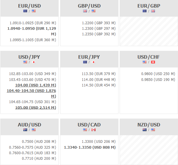 Poniżej znajdują się opcje walutowe wygasające o godzinie 16:00: