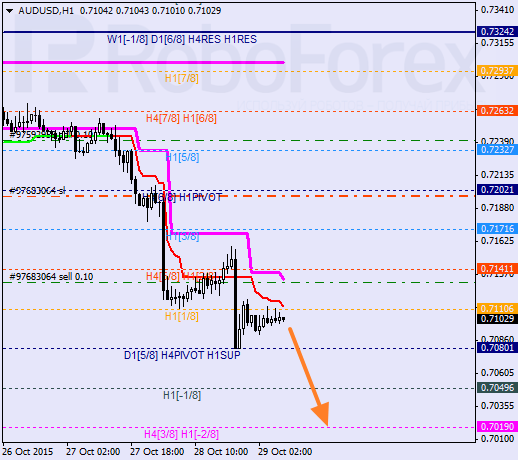 H1: cena osiągnęła poziom 0/8 i rozpoczęła korektę, która może być kontynuowana podczas czwartkowej sesji. Jeśli cena przełamie -2/8 linie MM zostaną przerysowane.