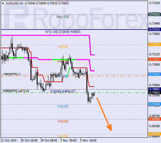 H1: para porusza się w strefie wyprzedania. Jest wysoce prawdopodobne, że podczas dzisiejszego dnia cena będzie testować 0/8. Jeśli odbije od tego pułapu, rynek powinien kontynuować spadek osiągając lokalne minimum.