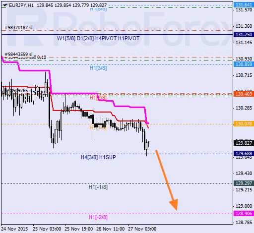 H1: cena porusza się blisko strefy wyprzedania. Wcześniej para odbiła od linii trendowych kilkukrotnie. W najbliższym czasie rynek może kontynuować spadek w kierunku -2/8.