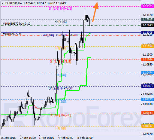 H4: para przebywa w korekcie nad 8/8 wewnątrz strefy wykupienia. Obecna korekta wzrostowa wspierana jest przez linie trendowe. W najbliższym czasie rynek może kontynuować wzrost i przełamać +2/8. W tym przypadku linie na wykresie zostaną przerysowane.