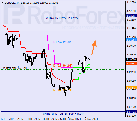 H1: cena przebywa w środkowej części linii MM. Linia trendowa wspiera cenę. Nie jest wykluczona kontynuacja wzrostu podczas dzisiejszej sesji, która mogłaby być potwierdzona poprzez wzrost ceny nad 5/8.