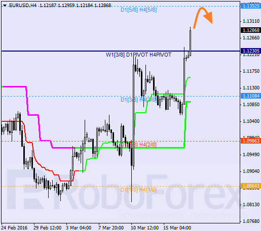 H1: para porusza się wewnątrz strefy wykupienia. Para może rozpocząć nową lokalną korektę z +1/8. Jeśli rynek odbije od linii trendowej z H4 cena może kontynuować wzrost w kierunku +2/8.