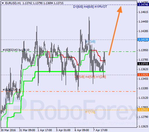 H1: para kilkukrotnie odbiła się od 2/8. Linie trendowe są pod wpływem „złotego krzyża”. Jeśli w najbliższym czasie cena zdoła pozostać nad 3/8, rynek może kontynuować wzrost w kierunku 4/8.