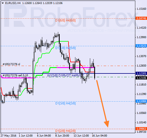 H4: para uformowała „krzyż śmierci” co oznacza, że rynek może wznowić spadek. Jeśli cena zdoła pozostać poniżej 4/8, następnym celem będzie pułap 3/8.