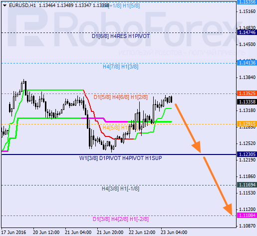 H4: para nie zdołała przełamać 6/8 co oznacza, że może spadać dalej. Wobec tego cena może rozpocząć krótkoterminowy ruch spadkowy w kierunku 4/8. W przypadku przełamania tego pułapu, rynek powinien kontynuować spadek w kierunku poprzedniego minimum.