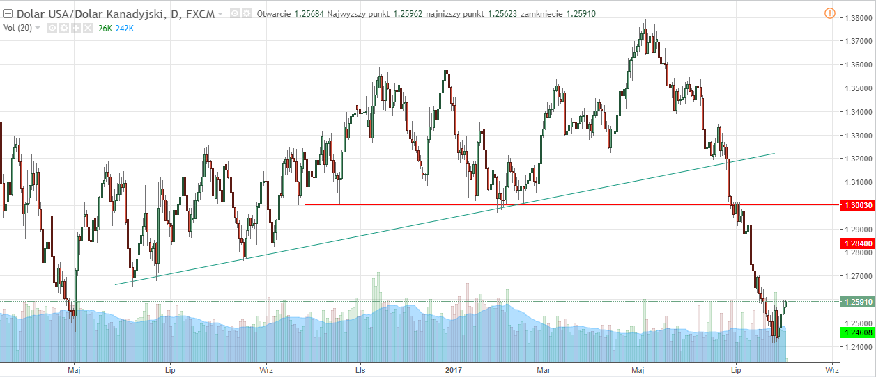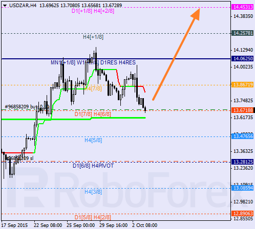 H4: para porusza się wewnątrz strefy wykupienia. Wcześniej cena odbiła od linii trendowej i osiągnęła nowe dno. Jeśli cena przełamie +2/8, linie na wykresie zostaną przerysowane.