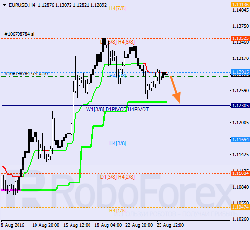 H1: linie trendowe pozostają pod wpływem „krzyża śmierci”. Jeśli para zdoła pozostać poniżej 2/8 może rozpocząć ruch spadkowy. Najbliższym celem jest 0/8. Po jego przełamaniu, rynek może spadać w kierunku -2/8.
