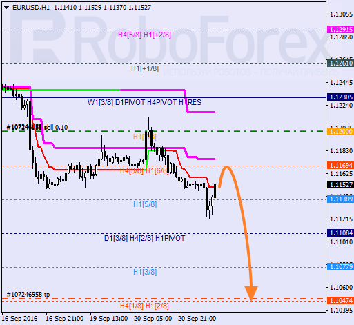 H1: linie trendowe pozostają pod wpływem „krzyża śmierci”. Para nie zdołała pozostać pod 5/8 i rozpoczęła nową korektę. Jeśli cena odbije od 6/8, rynek może rozpocząć nowy ruch spadkowy.
