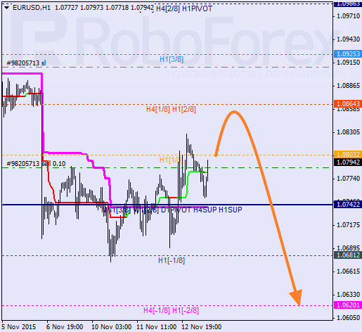 H1: para porusza się w dolnej części linii MM. Jeśli cena odbije od 2/8 niedźwiedzie powinny powrócić na rynek. Jeśli para pozostanie poniżej 0/8 warto pomyśleć nad shortem.