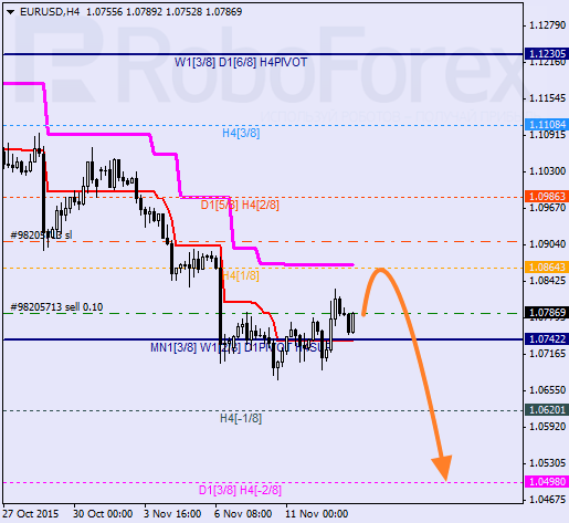 H4: para pozostaje w korekcie. Jest wysoce prawdopodobne, że cena przetestuje dzisiaj dzienną linię trendową. Jeśli para odbije się od niej rynek powinien wznowić spadek w kierunku -2/8.