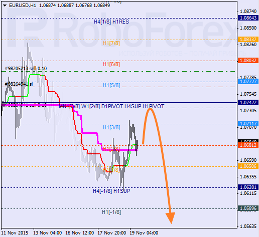 H1: prognozowanym celem korekty jest 4/8. Jeśli cena odbije od niego i będzie zdolna do pozostania poniżej linii trendowych, warto pomyśleć nad shortem.