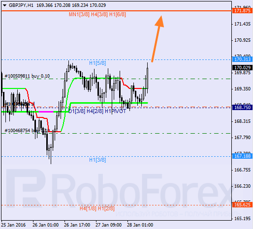H1: para porusza się w środkowej części linii MM. Prawdopodobnym jest, że cena spróbuje przełamać 5/8 i pozostać nad nim. Jeśli to się stanie rynek może kontynuować wzrost.