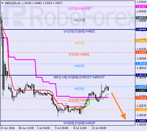 H1: para dwukrotnie zawróciła od 6/8, jeśli cena zejdzie poniżej linii trendowych możliwy będzie ruch spadkowy w kierunku 2/8.