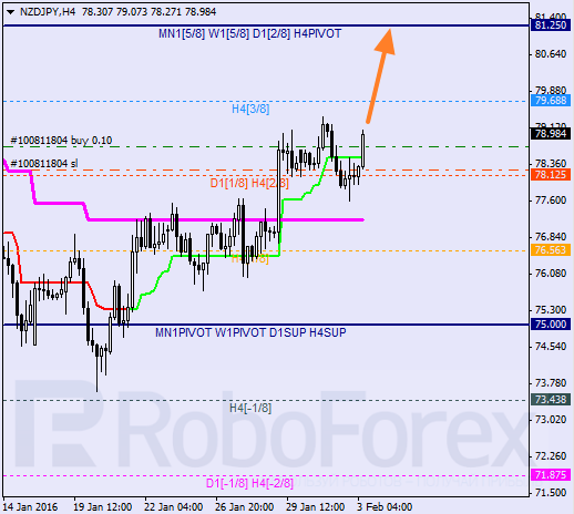 H1: linie trendowe uformowały „złoty krzyż”. Jeśli później cena zdoła pozostać nad 5/8, wzrost może być kontynuowany. W tym przypadku celem będzie 8/8.