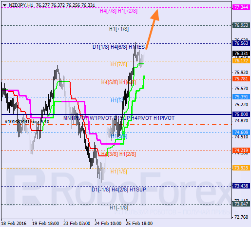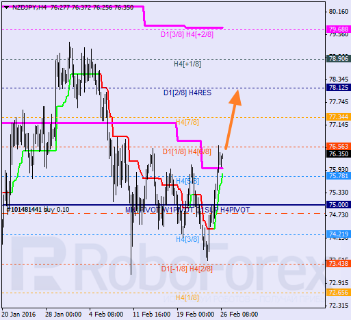 H1: cena porusza się w górnej części linii MM. Wsparcie pochodzi obecnie od linii trendowych. Nie można wykluczyć, że podczas dzisiejszej sesji cena przełamie 8/8 i wejdzie w strefę wykupienia.
