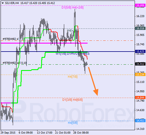 H1: notowania poruszają się wewnątrz strefy wyprzedania. Wcześniej linie trendowe uformowały „krzyż śmierci”. Jest wysoce prawdopodobne, że w najbliższym czasie cena przełamie pułap -2/8. W tym przypadku linie MM zostaną przerysowane.