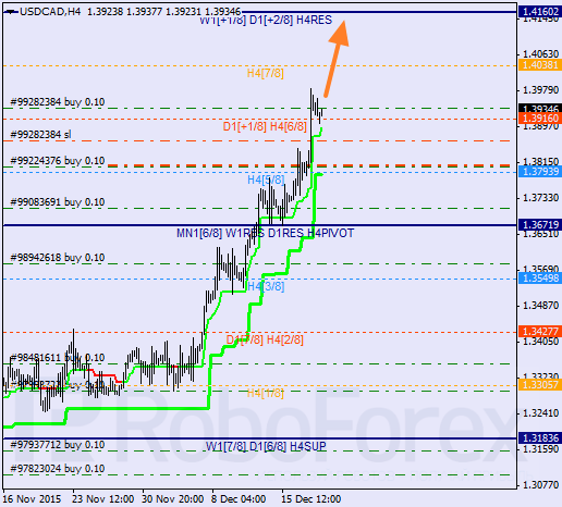 H1: para rozpoczęła nową lokalną korektę z poziomu +1/8 i obecnie próbuje odbić od 8/8. Owy układ implikuje, że rynek może kontynuować ruch w górę.