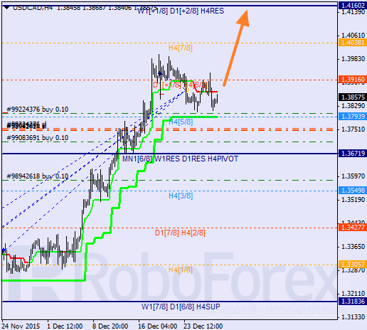 D1: para pozostaje pod wpływem silnego trendu wzrostowego. Cena porusza się także wewnątrz strefy wykupienia. Byki są wspierane przez dzienną linię trendową, od której para odbiła w górę. Jest wysoce prawdopodobne, że w styczniu rynek przetestuje +2/8.