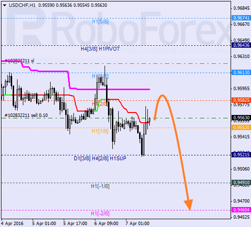 H1: para odbiła od 0/8 i rozpoczęła korektę. Możliwe, że podczas dzisiejszej sesji rynek przetestuje linię trendową H1. Jeśli odbije od tego pułapu możemy wznowić spadek. W tym przypadku para może osiągnąć -2/8.