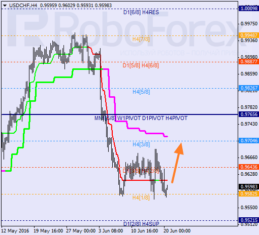 H1: para odbiła od 0/8 i obecnie porusza się nad linią trendową H1. Jeśli cena przełamie 2/8 podczas dzisiejszego dnia i pozostanie powyżej jego, rynek może kontynuować wzrost w kierunku 4/8.