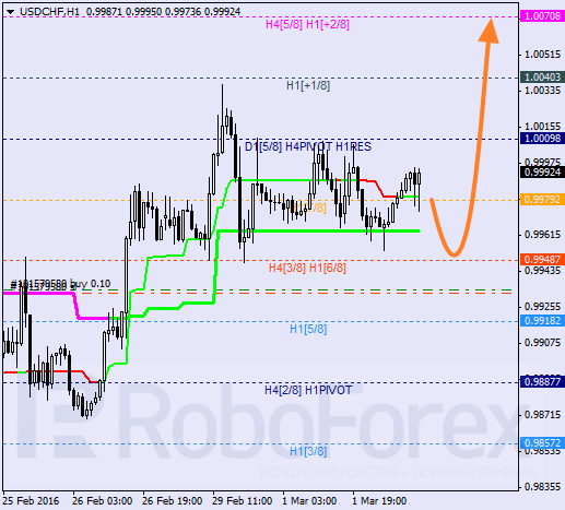 H1: cena przebywa w górnej części linii MM. Wcześniej linie trendowe uformowały „złoty krzyż”. Jeśli cena zdoła wzrosnąć nad 8/8 będzie to oznaczać możliwość wzrostu w kierunku +2/8.