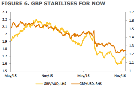 Kiedy artykuł 50 będzie już zainicjowany, niepewność prawdopodobnie wzrośnie, zaś finansowanie deficytu bilansu płatniczego pozostanie głównym problemem. Wydatki inwestycyjne oraz napływające bezpośrednie inwestycje zagraniczne mogą spaść, podczas gdy rosnąca inflacja mogłaby nadszarpnąć realne dochody. ANZ estymuje dalszy spadek funta, celując w 1,22 na GBPUSD na koniec Q1 2017.