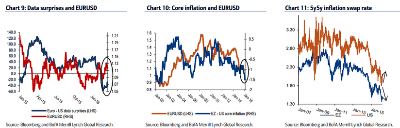 Analitycy BofA argumentują, że kurs euro niedoszacowuje potencjalnego zakłócenia gospodarczego powiązanego z ryzykiem Brexitu, stąd ich zdaniem sprzedaż EURUSD jest tańszym sposobem zabezpieczenia się na taką możliwość aniżeli sprzedaż GBPUSD.