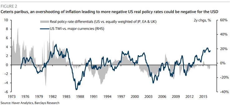 Na koniec bank wskazuje, że przestrzelenie inflacji względem obowiązujących stóp procentowych może prowadzić do bardziej ujemnych stóp realnych w dolarze, co z kolei może zmniejszyć urok aktywów denominowanych w USD.