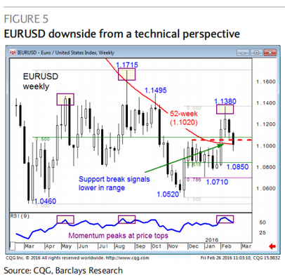 Analitycy Barclays’a rekomendują posiadanie opcji put (na spadek) na EURUSD jako tańszy sposób zabezpieczenia się przed ryzykiem związanym z referendum odnośnie do potencjalnego opuszczenia UE przez UK.