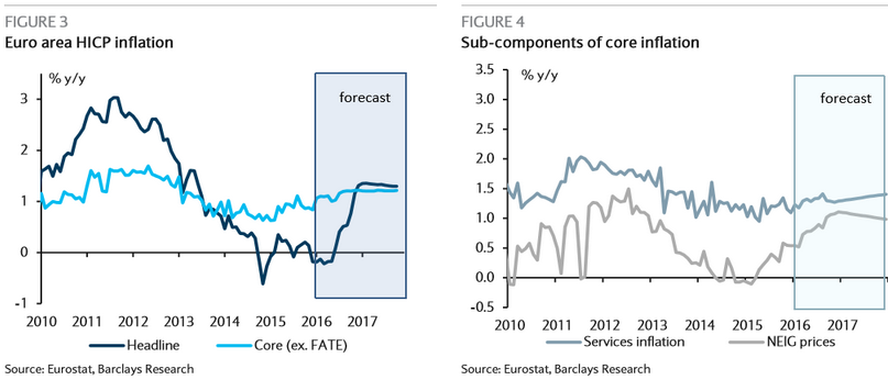 Analitycy Barclays oczekują dalszego luzowania polityki pieniężnej przez EBC w 2016 roku w miarę pogorszenia się presji deflacyjnej. Jednakże, bank sądzi, że nowe środki nie powinny być wdrożone prędzej niż w czerwcu, chyba, że zobaczymy kolejny ruch aprecjacyjny EUR lub istotny spadek oczekiwań inflacyjnych.