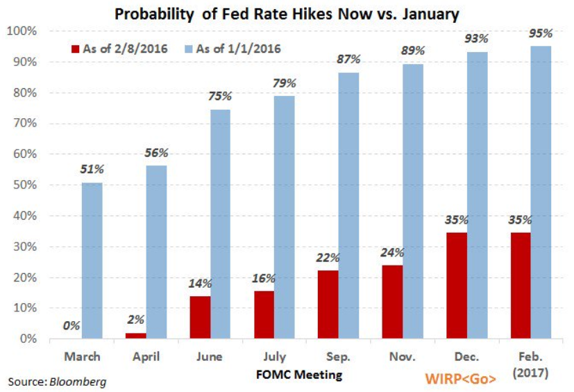 W nowy rok weszliśmy z przekonaniem, że FED zapewne zdecyduje się na kolejną podwyżkę stóp już na posiedzeniu w marcu. Dzisiaj prawdopodobieństwo implikowane przez kontrakty na stopę funduszy federalnych nie daje żadnych szans na ruch na kolejnym spotkaniu Komitetu.
