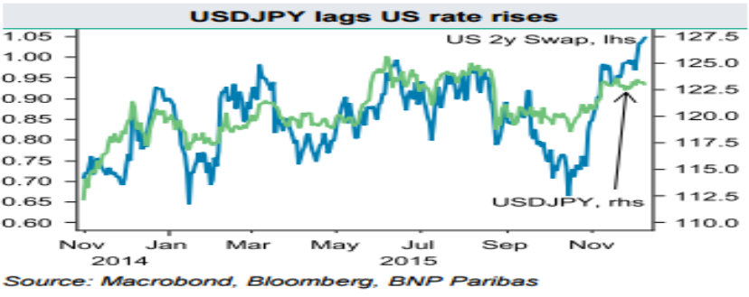 Takie trend jest zgodny z oczekiwaniami banku, którego analitycy zakładają wzrost pary w kierunku 6,60 podczas 2016 roku, w miarę odbicia dolara. Tak ukształtowane oczekiwania sygnalizują kontynuację aprecjacji USD względem walut azjatyckich, co powinno również wesprzeć wzrosty na USDJPY.
