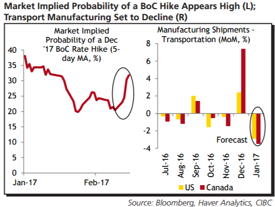 Ponadto wczesne dane wskazują, że styczeń nie był dobrym miesiącem dla dostaw wyposażenia transportowego, co często jest dobry wskaźnikiem trendów w tym jakże ważnym z kanadyjskiego punktu widzenia sektorze.