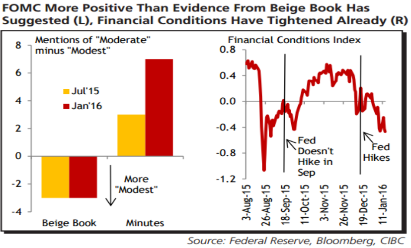 Wraz z rosnącą dywergencją między kursem dolara (wzrost) i rynkami akcyjnymi (spadek) warunki finansowe pogorszyły się, co może skutkować de facto zacieśnianiem polityki. Podczas gdy marcowa podwyżka jest wciąż bazowym scenariuszem CIBC, zaprzestanie podwyżek po tym okresie mogłoby szkodzić dolarowi.