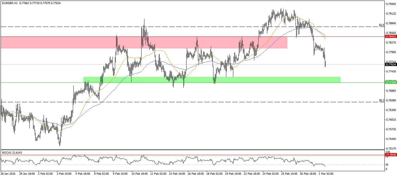Spoglądając na wykres godzinny możemy sądzić, że spadek w rejon 0,77 jest jak najbardziej prawdopodobny. Właśnie na tym obszarze rozciąga się lokalna strefa popytowa.