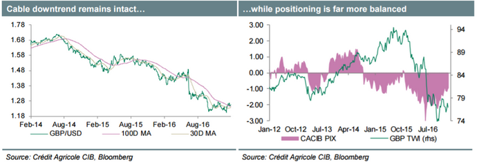 CA pozostaje wciąż „z krótką” na GBP i rekomenduje sprzedawanie kabla na wzrostach w kierunku 1,25, które ich zdaniem nie będą trwałe.