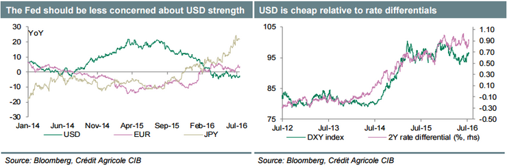 Bank sądzi, że owa reakcja w oczekiwaniach będzie ważna dla dolara, jeśli sentyment w stosunku do aktywów EM osłabi się. W wyniku tego dolar powinien zyskać w stosunku do walut G10, zwłaszcza z bloku surowcowego, niemniej nie w stosunku do JPY.