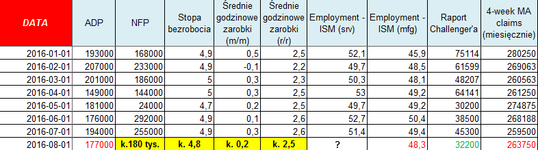 Dane jakie do tej pory poznaliśmy za sierpień były dość słabe w porównaniu do poprzednich wartości. Z drugiej strony ani raport ADP ani miesięczna średnia wniosków o zasiłek z pewnością nie wymagają większej poprawy. Wielkości te wciąż znajdują się na akceptowalnych poziomach, co powinno przekonywać FED.