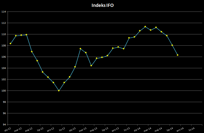 Już jutro kolejny wskaźnik nastrojów w niemieckim biznesie, tym razem wskaźnik IFO. Konsensus rynkowy w dalszym ciągu zakłada wartość poniżej odczytu sierpniowego, co byłoby już piątym z kolei gorszym rezultatem.