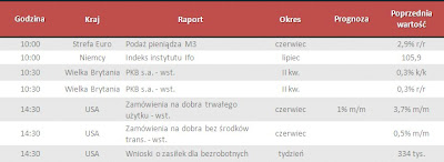 W czwartek warto zwrócić uwagę na godzinę 10:00 kiedy to będą publikowane dane ze Strefy Euro. godzinie 10:30 informacje z Wlk. Brytanii odnośnie PKB. Po południu tj. godzina 14:30 zamówienia na dobra i wnioski o zasiłek dla bezrobotnych w USA. Szczegóły w tabeli poniżej.