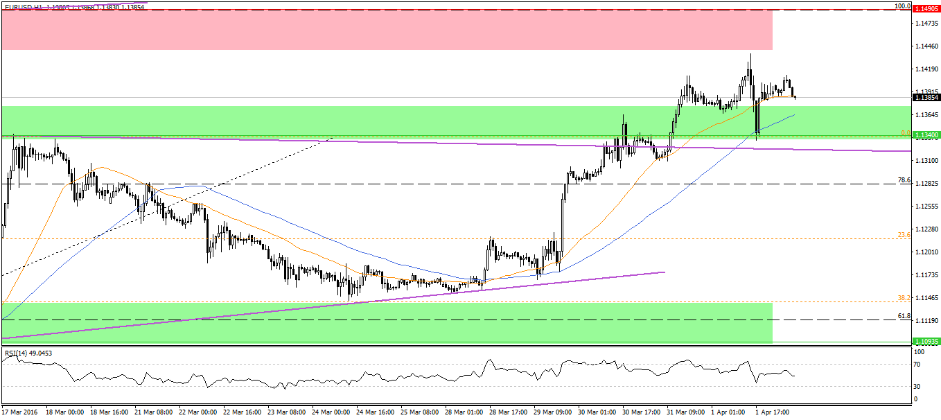 Na wykresie godzinnym rynek analizowanej pary wybił się ponad górne ograniczenie formacji trójkąta symetrycznego, co powinno prowadzić do wzrostów w kierunku 2,21.
