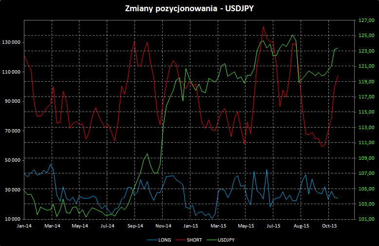 Co ważne, owy wzrost pozycji krótkiej netto spowodowany był wyłącznie poprzez istotny przyrost shortów, zaś longi praktycznie nie zmieniły się (mówiąc to mamy na myśli shorty na JPY, czyli oczekiwanie wyższych poziomów USDJPY).