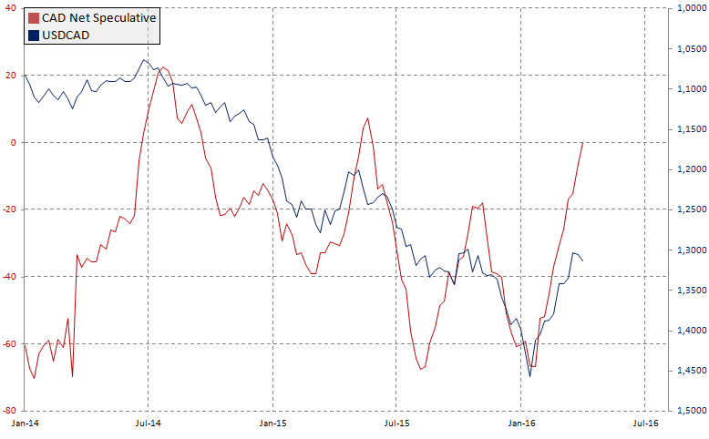 Tym samym widać, że pozycja krótka netto na CAD została wymazana, a inwestorzy spekulacyjni posiadają pozycję długą netto (minimalnie powyżej zera) po raz pierwszy od maja 2015. Wraz z kontynuacją odbicia cen ropy (dane z tego rynku wciąż pozostają obiecujące) oraz poprawiającą się sytuacją gospodarczą Kanady nie wykluczone, że przed nami kolejne ruchy aprecjacyjne CAD.