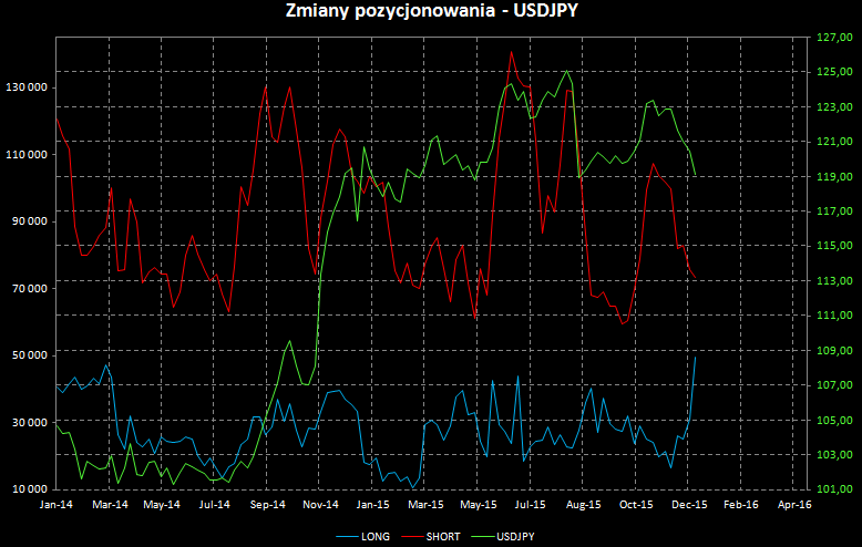 Efekt awersji do ryzyka widoczny jest doskonale w pozycjonowaniu na rynku japońskiego jena. Waluta Kraju Kwitnącej Wiśni okazała się jedną z najsilniejszych w ogóle spektrum walutowym w minionych dniach. Nie dziwi więc, iż tylko przez dwa dni (poniedziałek i wtorek, gdyż raport CFTC nie obejmuje pozostałych dni) liczba otwieranych pozycji długich była największa od ponad 2 lat.