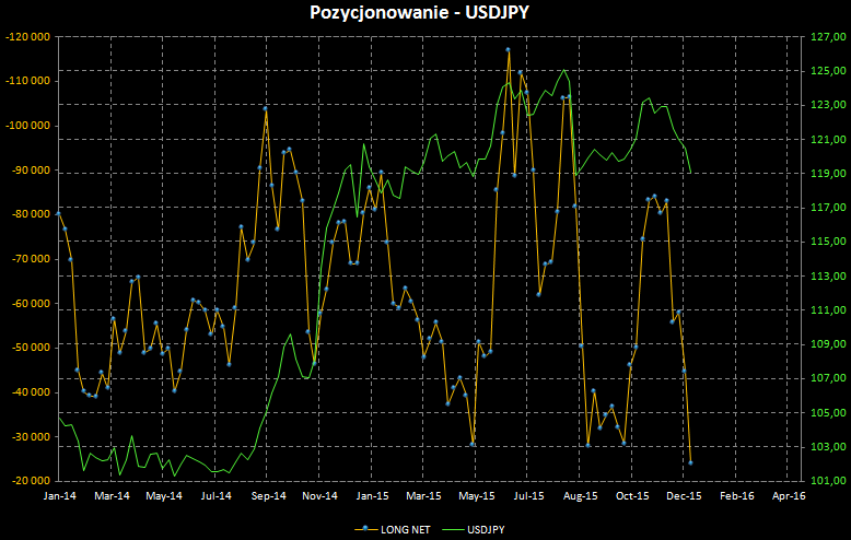 W efekcie czego pozycja krótka netto na rynku JPY (zajmowana przez fundusze hedgingowe) jest na najniższym poziomie od wspomnianego wcześniej okresu. Tym samym przestrzeń do dalszych spadków USDJPY jest coraz większa. Gdyby zatem awersja do ryzyka nie została zakończona para ta może zmierzać na kolejne niższe pułapy.
