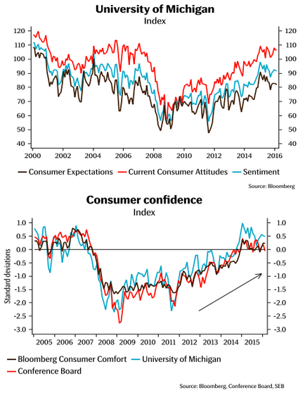 Porównując do wstępnego i finalnego odczytu indeksu nastroju konsumentów badanego przez Uniwersytet Michigan w lutym istnieje dowód, że zaufanie to poprawiło się w drugiej połowie miesiąca (wstępna wartość wyniosła 90,7).
