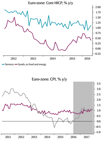 Z kolei w przypadku inflacji bazowej bank nie spodziewa się większych ruchów, lecz dostrzega sygnały, które mogą świadczyć o pewnym osłabieniu się „core HICP”.