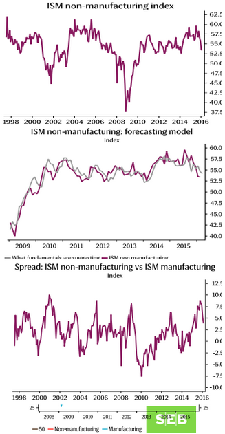 Analitycy skandynawskiego banku wskazują na nieco lepszy od oczekiwań ostatni, usługowy indeks ISM. Niemniej jednak poziom ten zniżkował znacząco w ciągu ostatnich kilku miesięcy.
