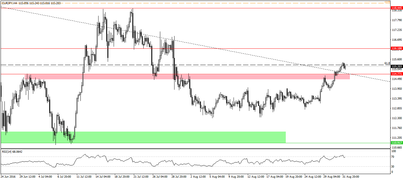EURJPY: atak na strefę podażową